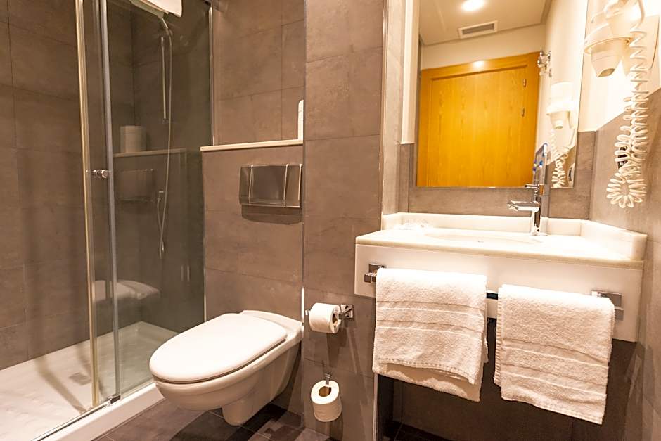 DOUBLE CONFORT STREET VIEW includes 2 single beds 80-130 width plus terrace, desk, hairdryer, and safe.